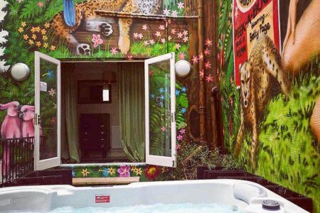 The property is powered by green energy and features a sophisticated vintage decor with retro pin-up imagery. Perfect for fun group getaways. Retro imagery may not be suitable for young children.