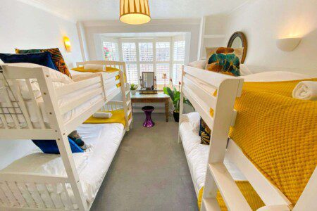 Vintage-inspired four bedroom house in the heart of Brighton is ideal for hens and group getaways. Accommodating up to 16 guests in 14 beds, the home boasts quirky décor, modern comforts, and a private outdoor terrace with a hot tub. Just minutes from the beach and Kemptown’s vibrant pubs, bars, cafes, restaurants and nightlife, it’s the perfect base for an unforgettable stay.