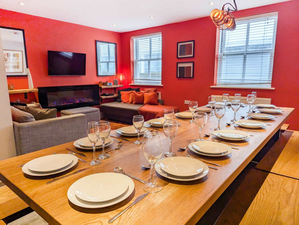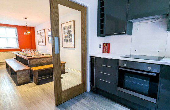 Spread over three floors, this contemporary city pad offers a blend of urban sophistication and comfort. The open-plan living and dining area is perfect for socialising, while the sleek kitchen is fully equipped for group meals. The stylish décor includes handcrafted lighting, an artisan dining table, and memory foam mattresses for a restful stay.