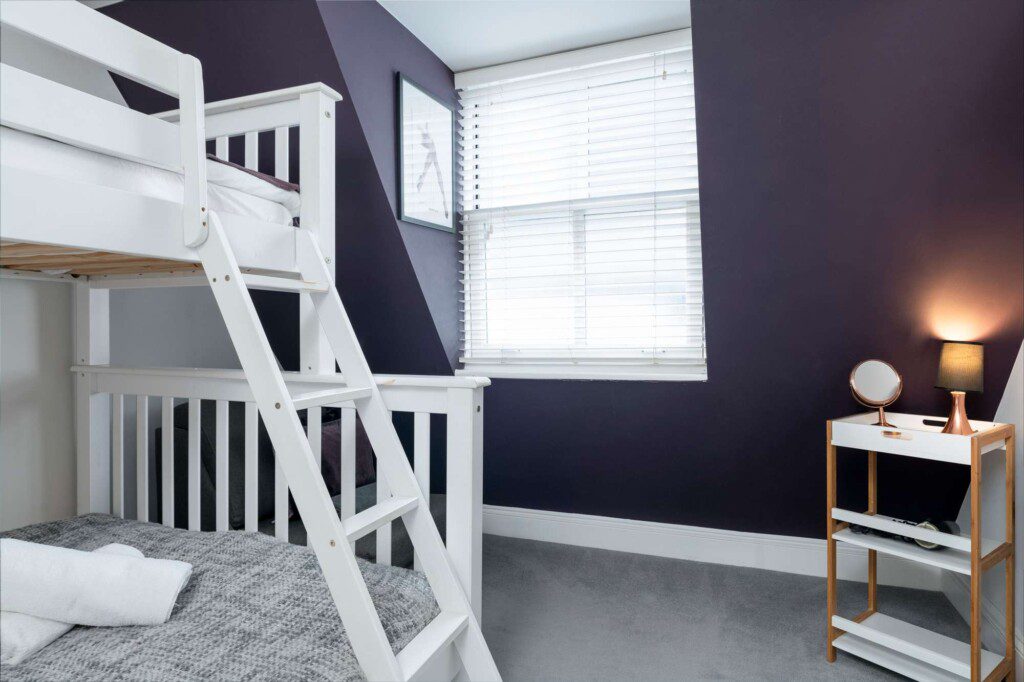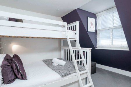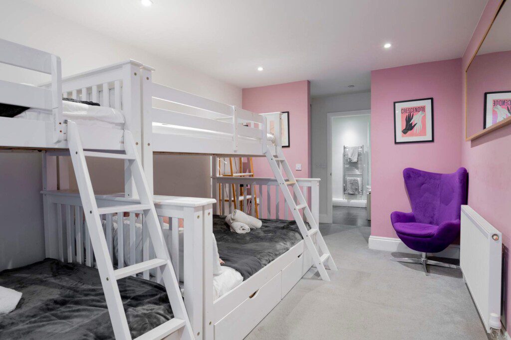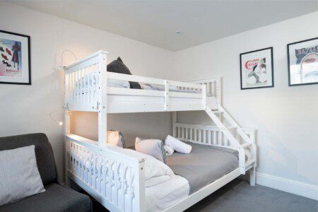 Also on the second floor, this room mirrors Bedroom 2, with a triple bunk bed and chair bed, sleeping four.
