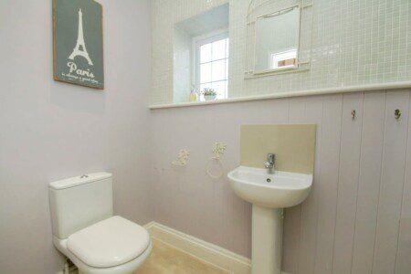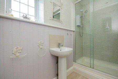 Accessible via the Antoinette Room as well as the hallway, this bathroom comes with a shower, wash basin and WC.