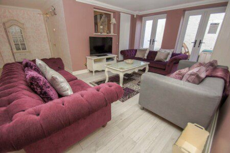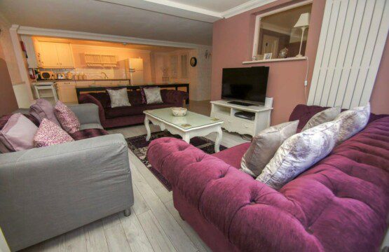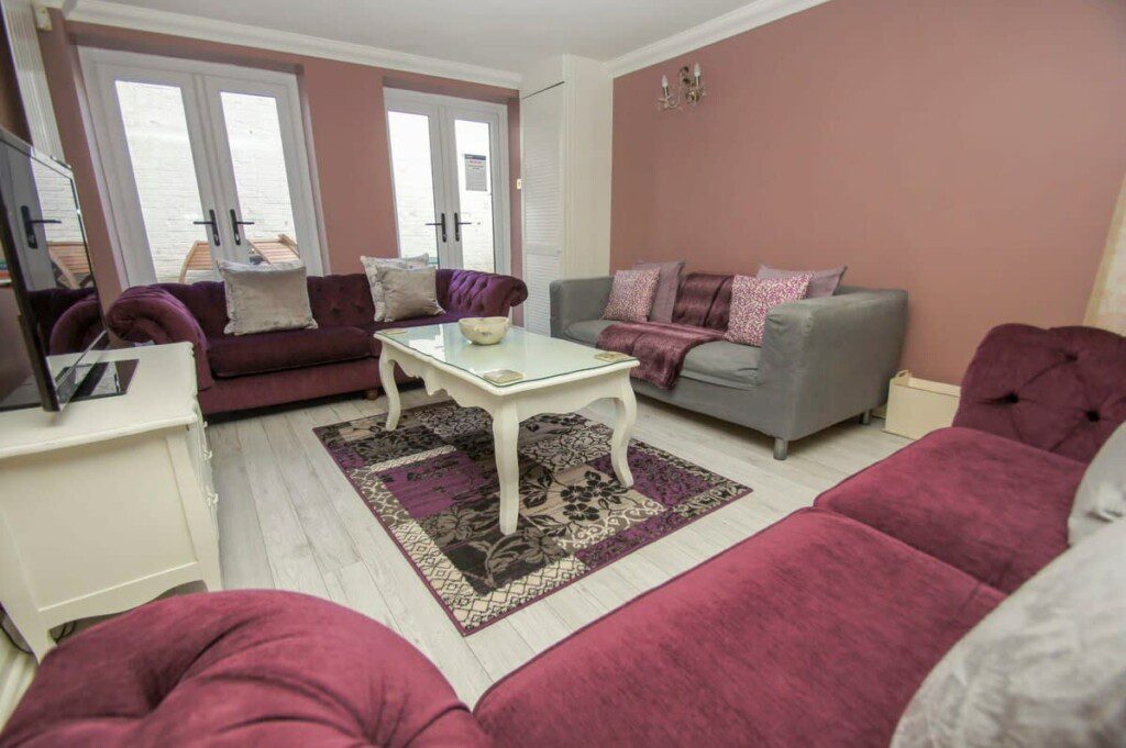 The lounge, decorated in soft pinks with the added accent of deep purples, has lovely plush sofas, a coffee table and large screen TV with NowTV giving you access to Sky, Sky Cinema and Netflix.