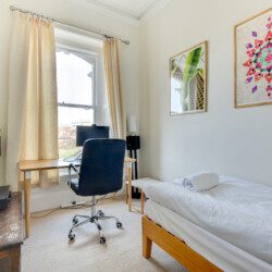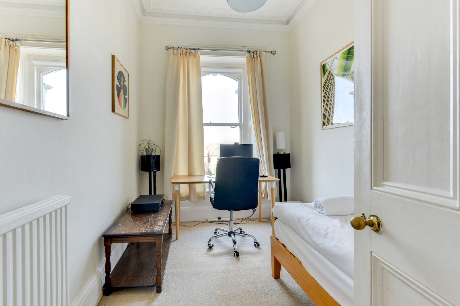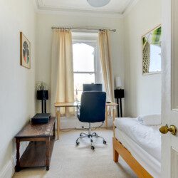A single bedroom with a dedicated working space with Lenovo monitor with HDMI lead, wireless Logitech keyboard and mouse, and hi-fi so you can listen to music whilst you work- just bring your laptop.