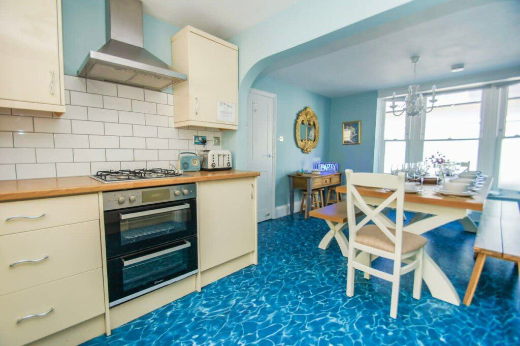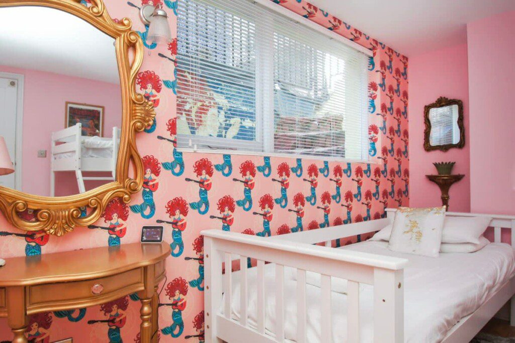 Come together to dine, cook, make cups of tea and talk about your plans. With the rippling water underfoot, and the mermaid wallpaper you’ll certainly have the under the sea vibe.