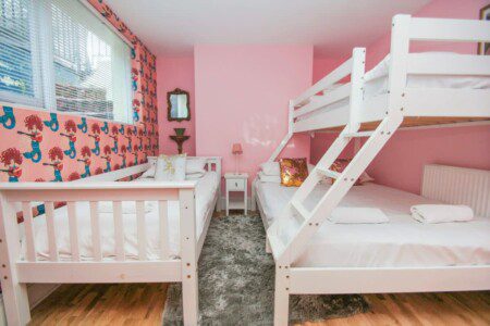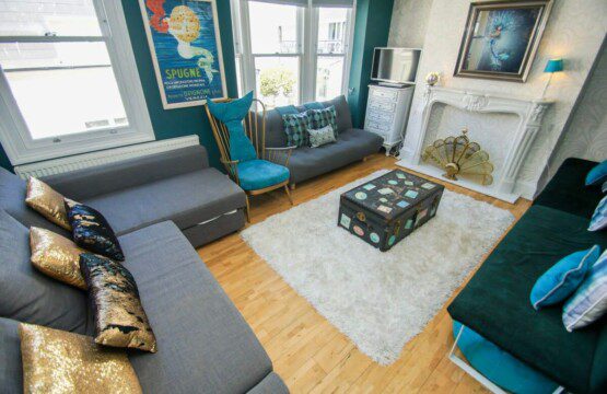 Five-story townhouse located in Kemptown, accommodating up to 18 guests across 12 individual beds. The charm of the Mermaid-themed four-bedroom house, provides a great backdrop for your Hen Do or friends’ gathering. Situated just a stone’s throw away from the beach, and surrounded by a vibrant array of cafes, shops, bars, and restaurants spanning from Kemptown to Brighton & Hove, Mermaid House offers an opportunity to create memories.
