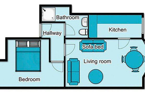 Just off the living room, this compact and fully equipped kitchen has all you need to cook a meal from a scratch or heat up a takeaway in the evening. You will find a fridge, washing machine and dishwasher for your use.