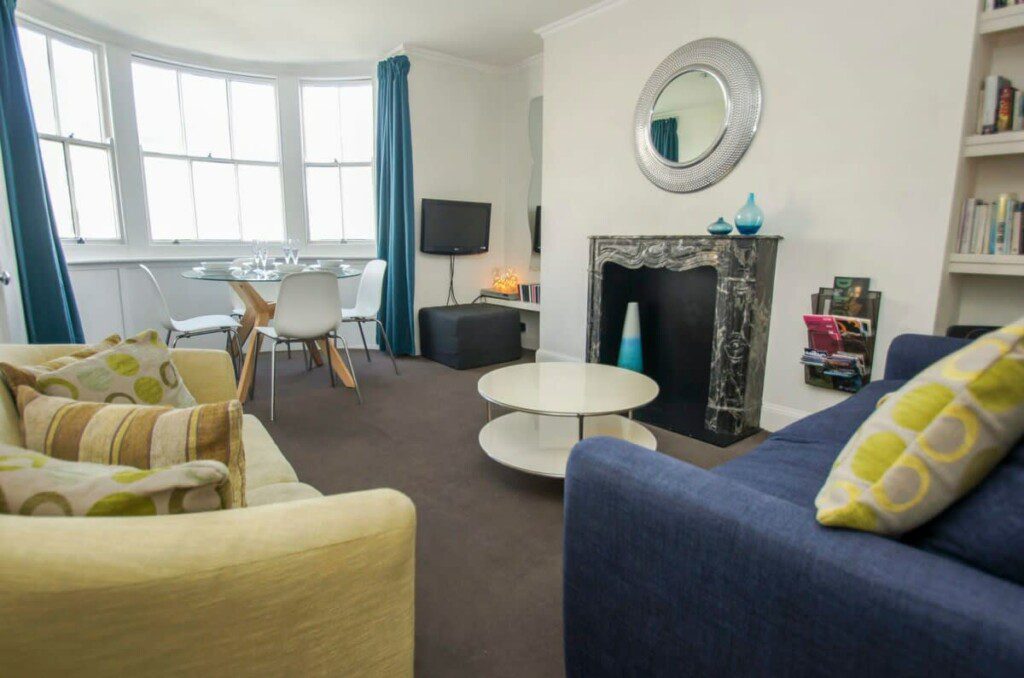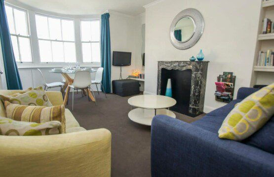 Contemporary one bedroom sea view apartment, sleeping four located in a Grade II listed building surrounding a Regency Square in the heart of Kemptown Village.