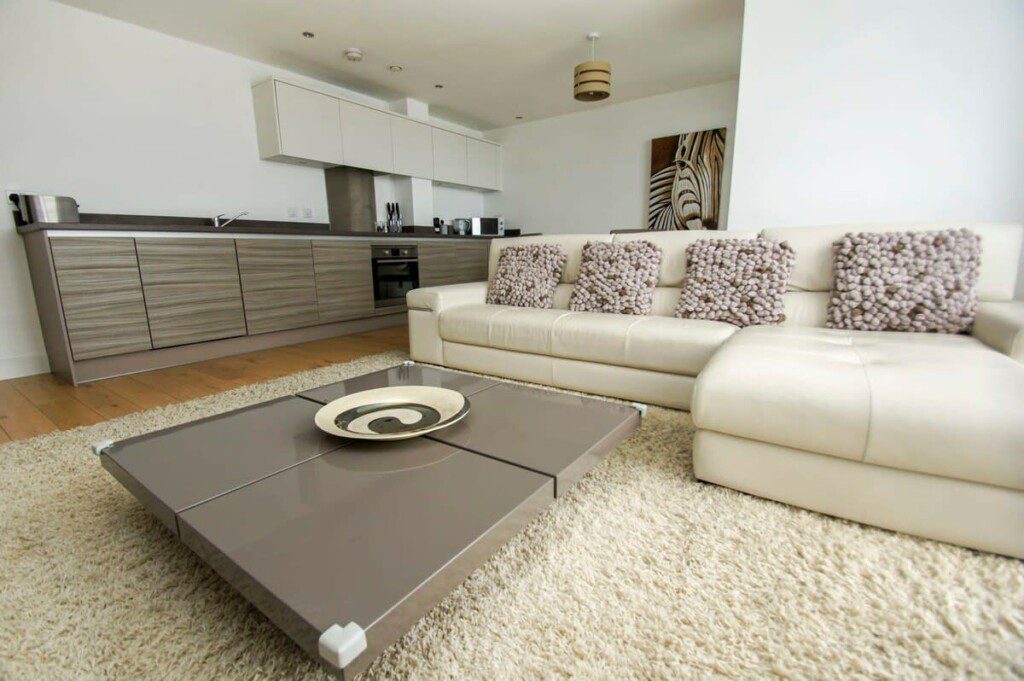 A contemporary, stylish social area, perfect for soaking up the harbour and sea vista. The cream leather corner sofa is great to lounge on and watch the TV or take in the views.