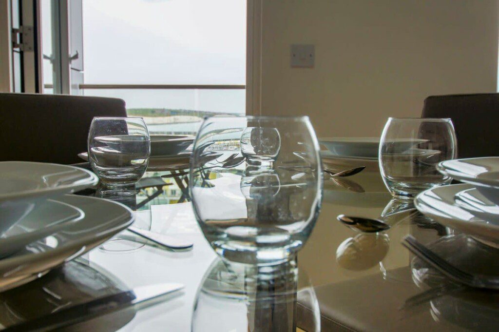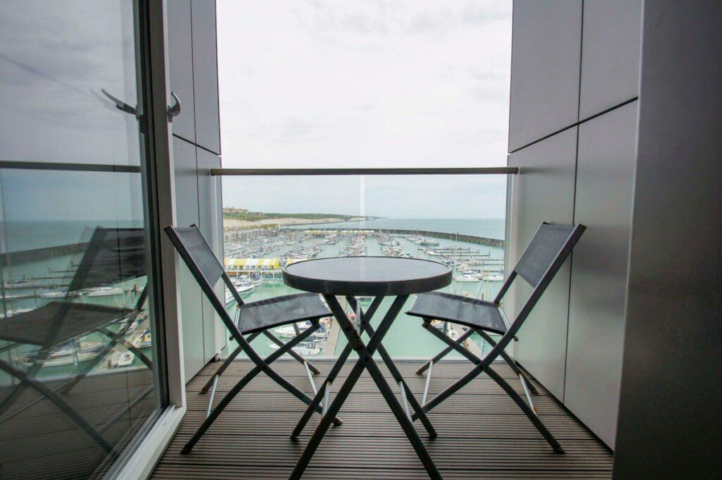 The balcony brings the outside in and provides a great space to breathe in the fresh sea air and appreciate the wonderful harbour views and chalk cliffs in the distance. There is a table and two chairs for you to go alfresco.