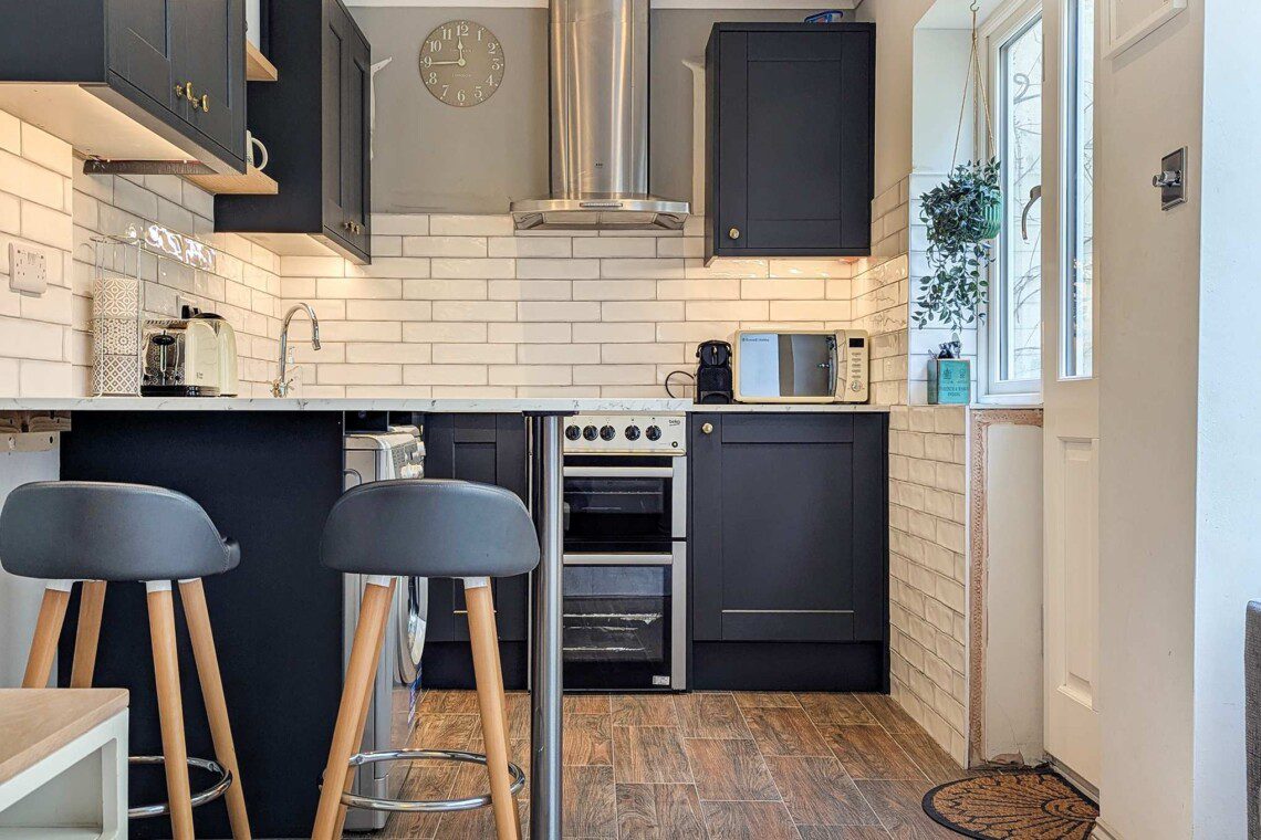 Located on the lower ground floor you will find a modern and fully equipped with a oven, hob, slimline dishwasher, fridge, washer/dryer, microwave, kettle, toaster, and a Nespresso coffee machine. The breakfast bar comfortably seats two for dining.