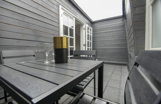 Double doors lead out onto a terrace with a table and four chairs – great for those balmy evenings with a glass of bubbly.