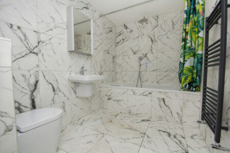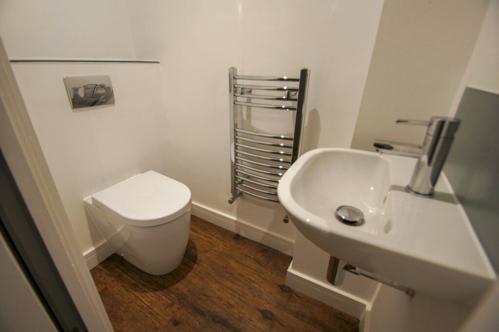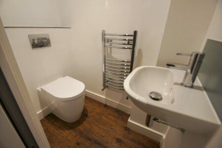 En suite to Bedroom 2, this double walk in shower shower comes with a rainfall shower as well as a hand held shower, sink and a mirrored cabinet with storage above, heated towel rail and a toilet.