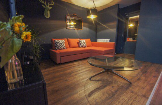 Sleeps four with two double beds and an en suite shower room. Copper pipe clothes rack with hanging rail and a chest of drawers will provide plenty of room for a weekend’s stay.
