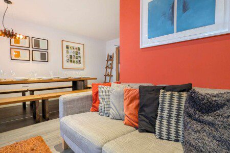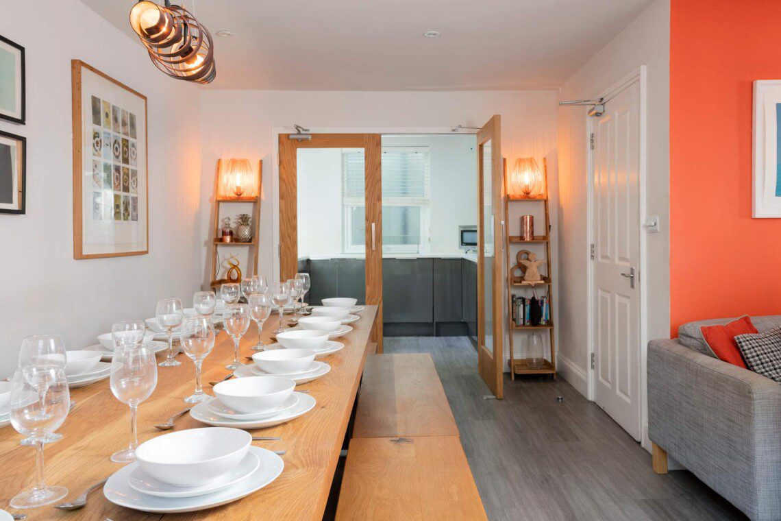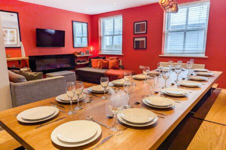Spread over three floors, this contemporary city pad offers a blend of urban sophistication and comfort. The open-plan living and dining area is perfect for socialising, while the sleek kitchen is fully equipped for group meals. The stylish décor includes handcrafted lighting, an artisan dining table, and memory foam mattresses for a restful stay.